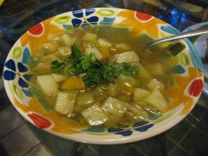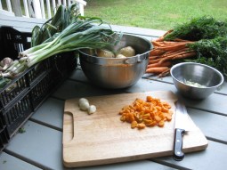 Today’s harvest ended with a delicious bowl of our bounty a la Potato Leek Carrot Soup! We recommend you try it too. (recipe adapted from leekpotatosoup.com).