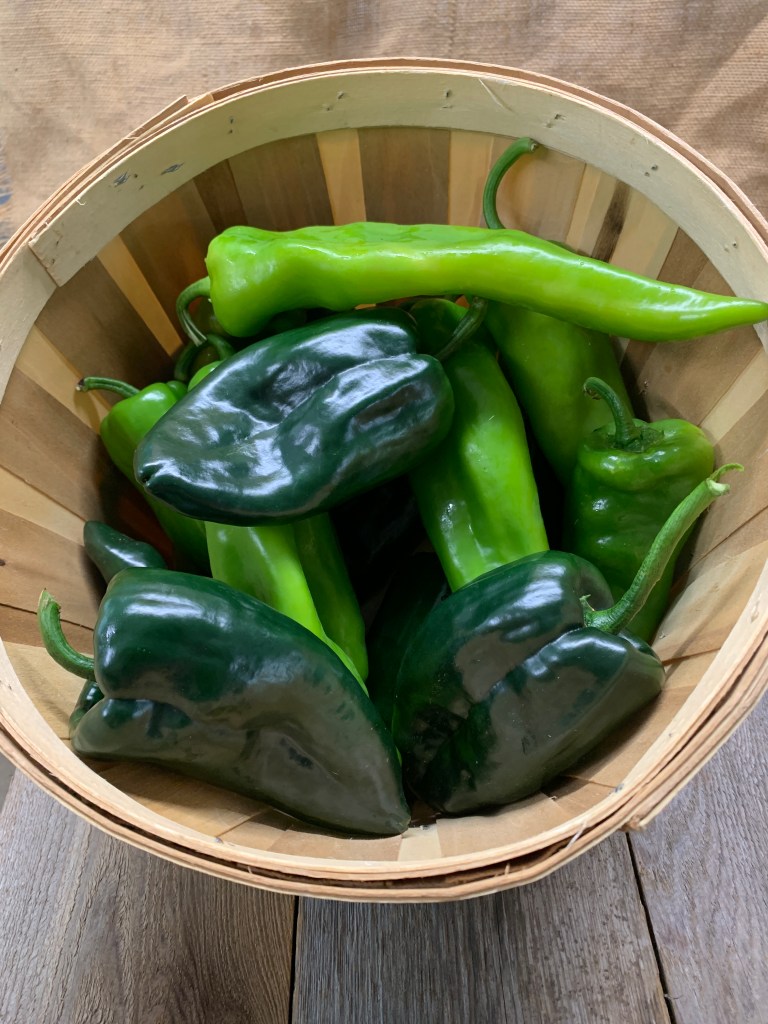 We bring our propane powered fire roaster to the Pittsboro Farmers Market, Thursdays 3-6, Lorax Lane, Pittsboro, NC and fire roast peppers for FREE! Customers select three pounds or more of our roasting peppers (and bells) and pay the regular market price (2023 $5 per pound) and our volunteer will roast them for FREE! You’ll receive your peppers in a freezer bag, ready for you to remove seeds and peel (EASY!) and then eat or freeze! This is peak pepper time and the season to freeze for winter soups, stews, and chilies!